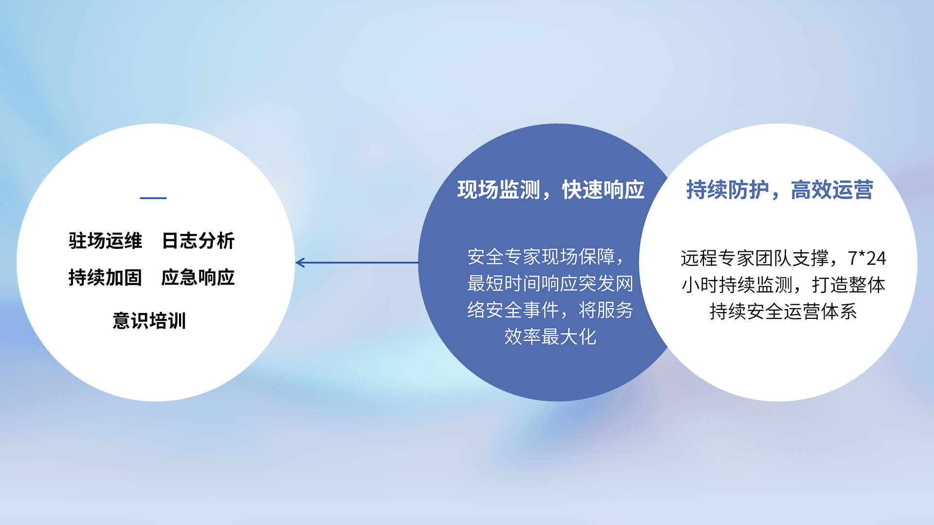 针对客户行业特性,,,,提供专属的一站式安全管理服务,,,帮助客户全面感知网络空间威胁,,,通过安全专家的线上、、、、线下防护支持,,,,实现风险闭环,,将安全保障常态化,,,为客户打造常态化安全运维运营服务。。。
